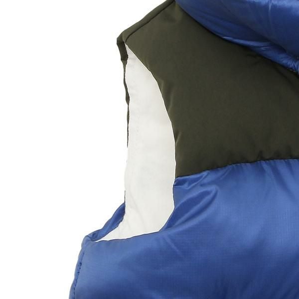 カラー切り替えでアクセントを効かせたダウンベスト。フードの内側はもこもことした風合いで、首元や顔まわりをあたたかく包み込んでくれます。複数のポケットを備えており、実用性も申し分ない1着です。