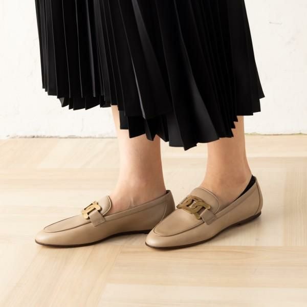 クラシカルな雰囲気を放つ上質な風合いが大人のこなれ感あふれる1足。ブランドを象徴するモチーフをあしらい、リッチなアクセントを添えました。安定感のあるフラットなソールで、履き心地も抜群です。