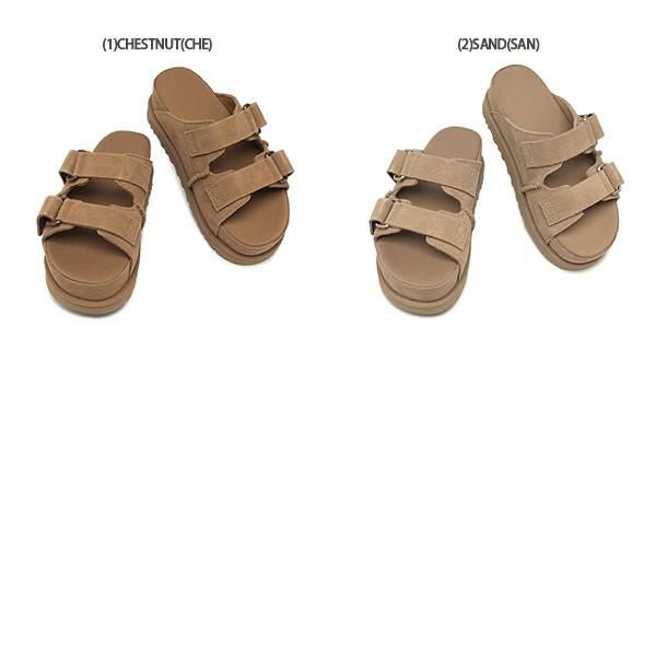 流行に左右されない、落ち着いた色合いと洗練されたデザインが魅力の1足。ストラップ部分にはさりげなくブランドロゴをあしらい、アクセントをプラスしました。ソールはフラットな仕様で歩きやすく、程よい厚みがあるので長く歩いても疲れにくいのが魅力です。
