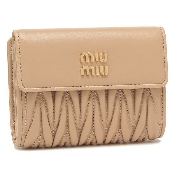 ミュウミュウ 三つ折り財布 マテラッセ ミニ財布 ベージュ レディース MIU MIU 5ML002 2FPP F0036 MATELASSE SABBIA ロゴ (ii29) |