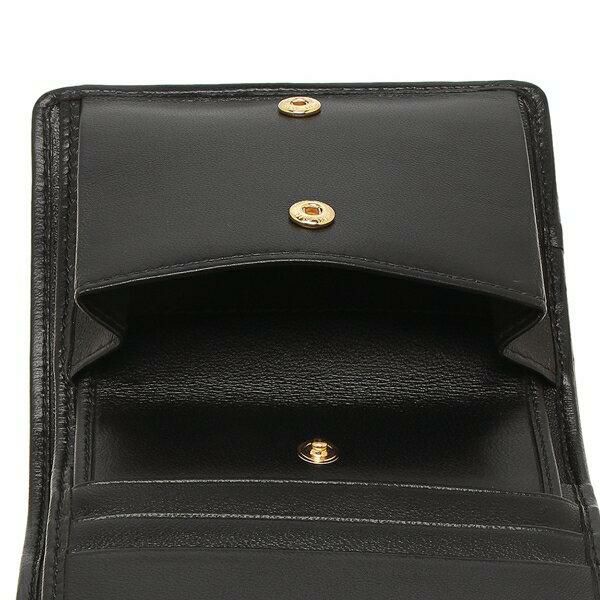 モノトーンカラーに輝かしいメタルロゴをあしらったラグジュアリーな折り財布。繊細にステッチを施し、立体感のあるスタイリッシュなデザインに仕上げました。開閉を楽々行えるスナップボタン仕様で、カードスロットを複数備えているのもポイントです。