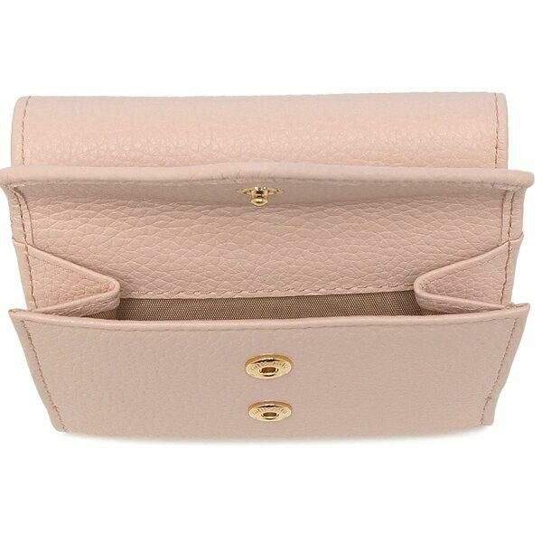 柔らかなベースカラーで女性らしい雰囲気を演出する一品。フロントにはきらめくメタルロゴをあしらい、ブランドのアイデンティティを表現しています。しっかりとマチがあるコインパースでお会計もスムーズにこなせ、実用性も申し分ないアイテムです。