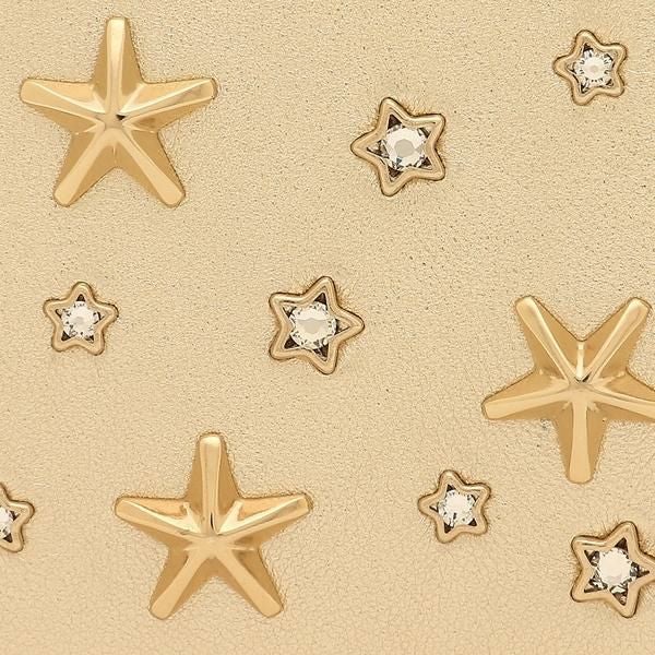 立体的なスタースタッズとカットストーンが気品を高めます。開閉は中身の確認がしやすいL字ファスナー仕様です。スリムなシルエットながら複数のカードスロットを備えており収納力を確保。キャッシュレス派の方にもおすすめです。