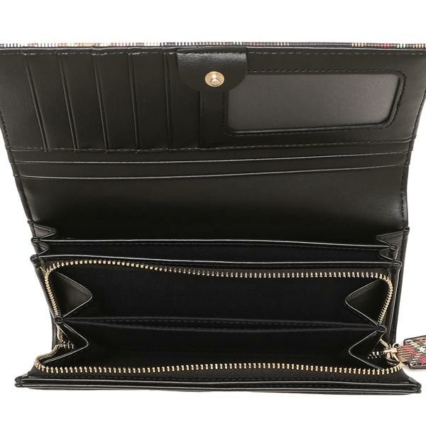 シックなタータンチェック柄が大人らしい雰囲気の長財布。開閉はスナップボタン式でスムーズに出し入れできます。豊富なカードスロットやクリアウィンドウポケットなどが備わり、機能性に優れた大容量サイズです。