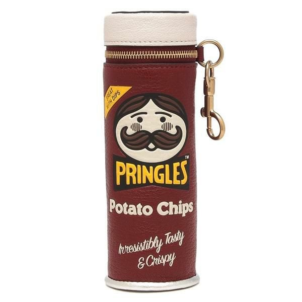 有名なスナック菓子のパッケージをそのままデザインに落とし込んだような、遊び心を感じるビジュアルが特徴です。筒形の仕様で見た目以上の収納力があり、小物入れとしても重宝。間口はファスナー仕様で中身の飛び出しもしにくいアイテムです。