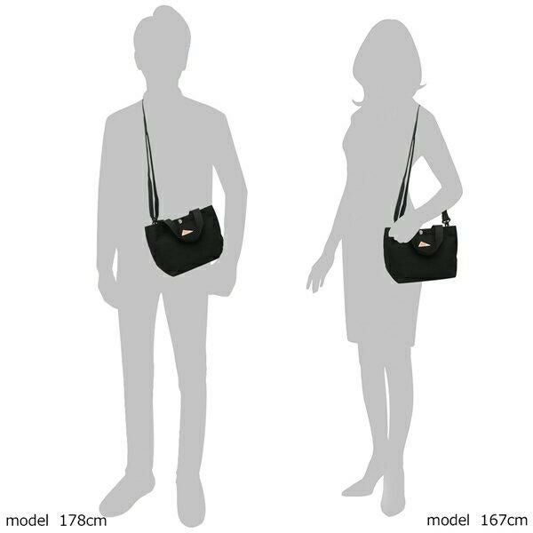 | サイズ | 約横上部26cm/下部20cm×縦17cm×幅12cm 持ち手の長さ:約29cm(持ち手の幅:約2.5cm)、ショルダーの長さ:約80-143cm(ショルダーの幅:約2.5cm) 重量:約160g |