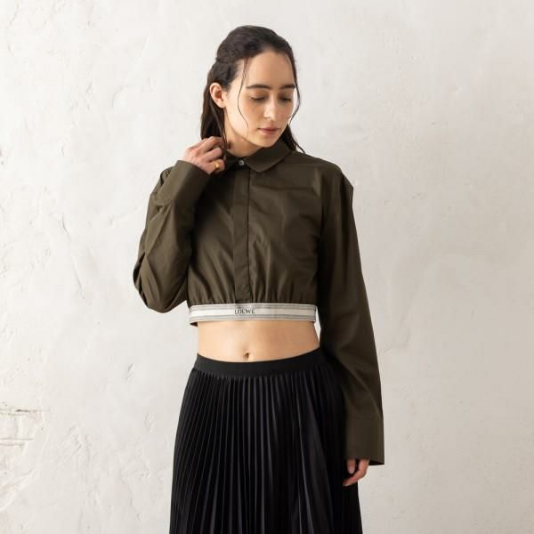 ロエベ シャツ ブラウス クロップド シャツ ロゴ カーキグリーン レディース LOEWE S359Y05XAX 4153