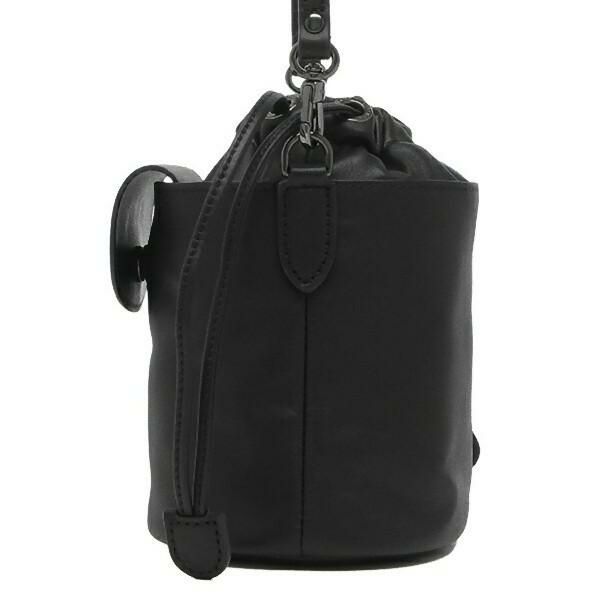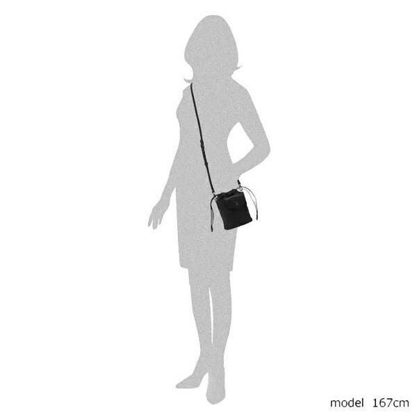 開閉種別:巾着 / 内部様式:ファスナーポケット×1、内仕切り無 外部様式:スナップ式ポケット×1 / その他:底鋲無、キーフック無、斜めがけ可、ピッチ幅:4cm、ショルダー取り外し可 |