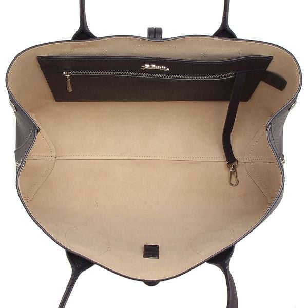 上品なカラーリングや風合いを引き立てるシンプルなデザインが魅力的。シャープな輝きを放つメタルパーツをさりげなくアクセントとして加えました。ハンドルは手に取りやすいチューブタイプで適度に長さがあり、肩掛けにも便利な仕様。サイドのスナップボタンでサイズを調節でき、たっぷりとマチがあるため通勤用のバッグとしても重宝します。