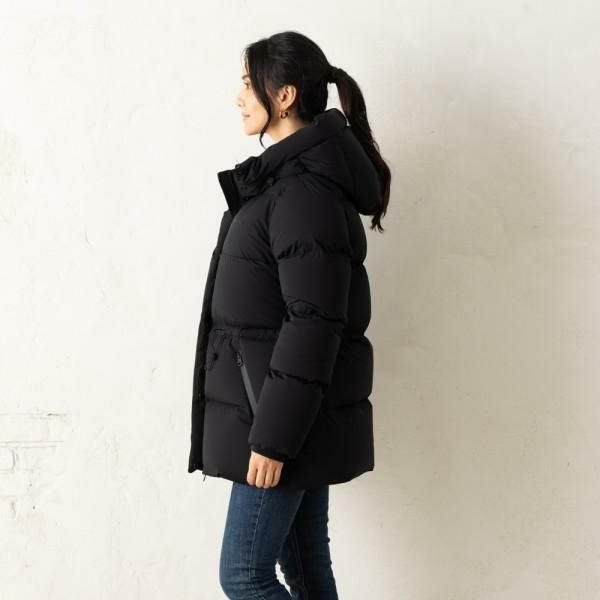 洗練されたマットな風合いあふれるダウンジャケット。ウエストのドローコードを調節して、シルエットの変化をお楽しみいただけます。ヒップが隠れる丈感で、あらゆるボトムスとマッチします。