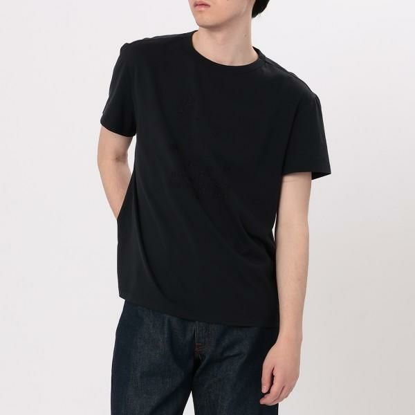 シンプルな中に同系色でブランドロゴをあしらったスタイリッシュなTシャツ。落ち着いた印象のモノトーンカラーがクールな雰囲気を演出してくれます。カジュアルからきれいめまで幅広いコーディネートに重宝するアイテムです。