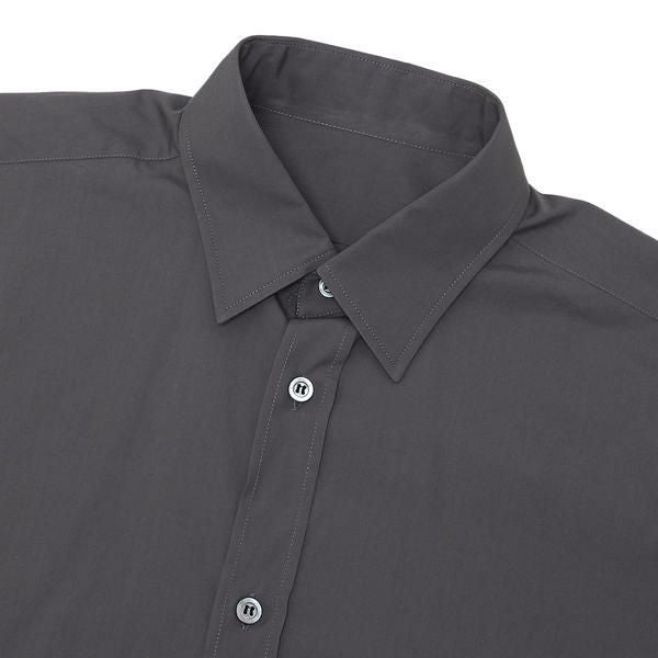 スタイリッシュさあふれるシックなカラーのシャツ。シンプルな佇まいながら切りっぱなしの袖口や、バッグスタイルに施したステッチ使いなど細部までディティールにこだわりました。単体ではもちろん、カーディガンやノーカラーのジャケットで合わせても好相性です。