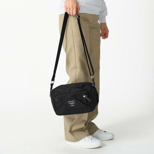 カジュアルな雰囲気を放つ横長デザインのショルダーバッグ。内外に複数のポケットを備えており、細かい荷物をきれいに分けられる設計です。アウトドアやレジャーシーンにも活躍するカラビナ付きも嬉しいポイントです。
