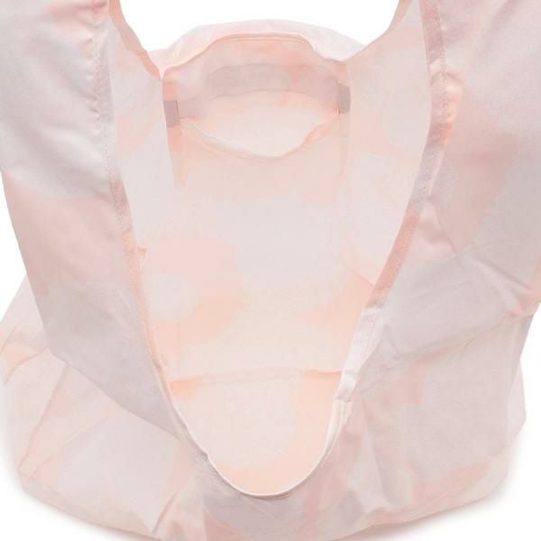 コンパクトに畳んで持ち歩けるポケッタブル仕様のバッグ。淡いトーンでまとめたウニッコ柄が女性らしさを演出します。大容量サイズで使いやすく、荷物が多い日やスーパーでのまとめ買いにも活躍するアイテムです。