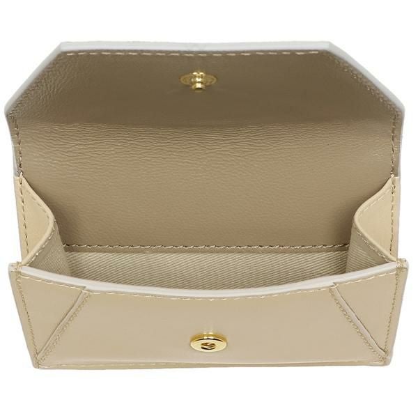 ソフトなカラーで優しげな印象に仕上げたウォレット。きらりと光るメタルロゴが高級感を高めています。マチ付きのコインパースや札入れなどを備えており、コンパクトなサイズながら使い勝手の良いアイテムです。