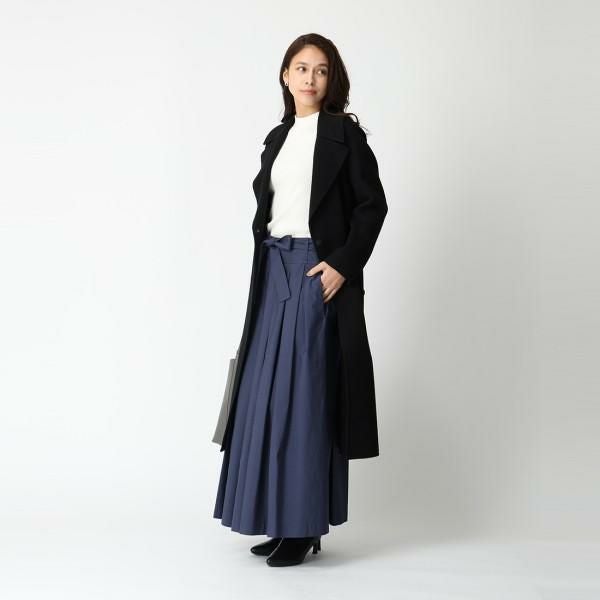 裾にかけて広がる、美しいプリーツデザインが魅力。落ち着いたカラーが上品な印象を与え、幅広いスタイリングにマッチします。ウエスト部分に組み合わせたタイベルトが、シャープなアクセントに。サイドにはファスナー付きで、着脱もスムーズに行えます。