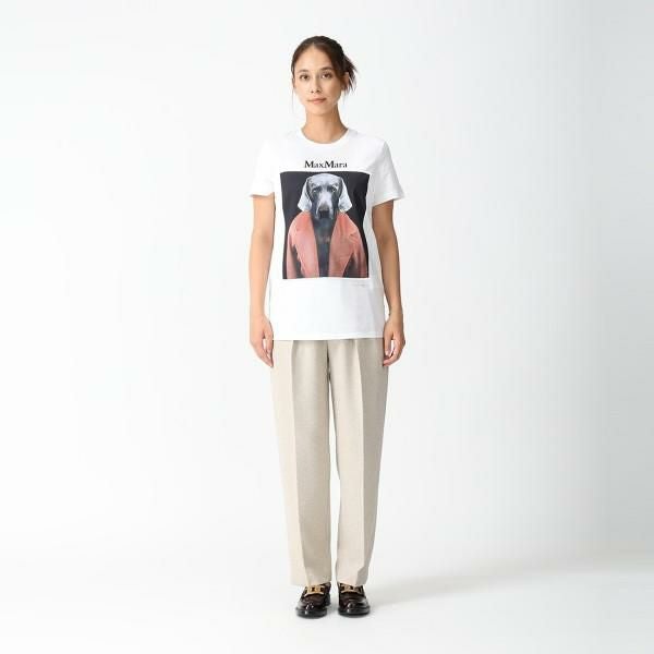 写真家ウィリアム・ウェグマンがMAX MARAのアイコン、101801コートを身にまとった彼の愛犬ワイマラナーを撮影したプリントが目を引くデザイン。ストレッチの効いたソフトな生地を使用しており、快適な着心地を叶えます。カジュアルからきれいめスタイルまで、幅広いコーディネートをお楽しみいただける1着です。