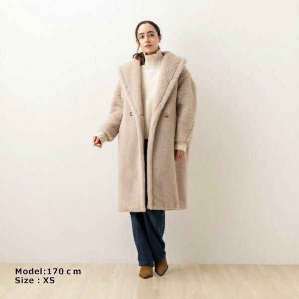 体を包み込むダブルブレストのオーバーサイズが魅力です。高品質なアルパカとヴァージンウール、シルクを使用した短い毛並みの生地で、保温性も抜群。デイリーにはもちろん、エレガントなシーンにも活躍します。