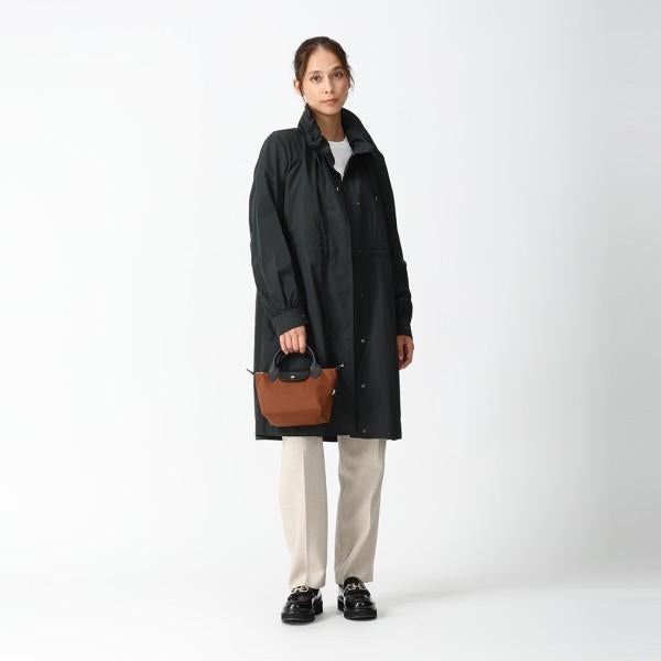 程よいハリのある風合いが印象的なコート。ウエストに備えたドローコードで、フィット感を調節できます。機能美の豊かさとスタイリッシュなデザインで幅広い世代におすすめのアイテム。ヒップが隠れるやや長めの丈で、体型カバーを叶えます。