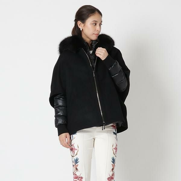 ムーレー アウター ダウンジャケット コート ペガソ ショート丈 ケープ ブラック レディース MOORER MODGI300009 TEPA348 U0001 PEGASO CWR DOWN JACKET NERO (ik24) |