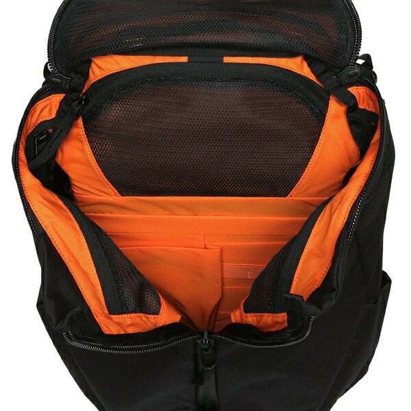 ブラックのワントーンでまとめたシックなデザインが特徴。フロントには鮮やかなカラーリングでロゴを施し、ブランドらしさを表現しました。大小さまざまなポケットを豊富に備え、荷物の整理整頓もスムーズ。使い勝手の良いサイズ感で、幅広いシーンに重宝します。