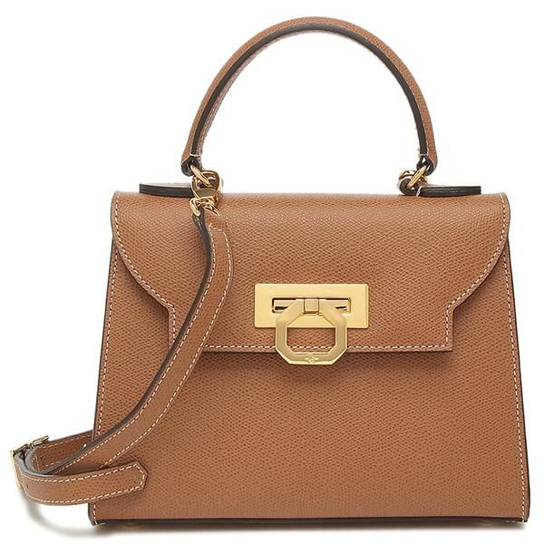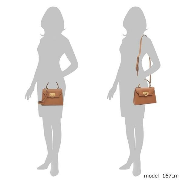 かっちりとした台形フォルムが大人の品格を高めます。フラップに施したメタルパーツがおしゃれなアクセントに。ミニ財布やスマートフォンなどの必需品が収まるコンパクトサイズです。取り外し可能なショルダーストラップが付いており、持ち方をアレンジできます。