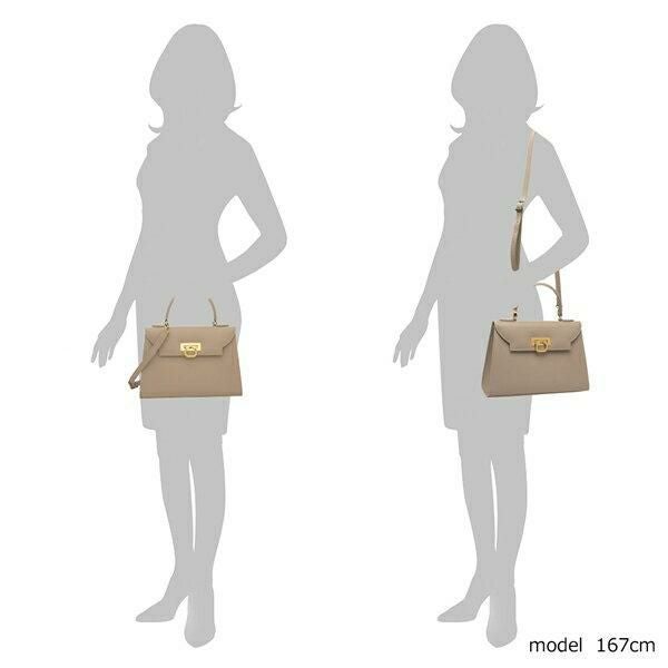 かっちりとした台形フォルムが特徴のハンドバッグ。フラップにあしらったメタルパーツがおしゃれなアクセントになっています。汚れを防ぐ底ビョウ付きも嬉しいポイント。デイリーからセレモニーシーンまで幅広く活躍します。