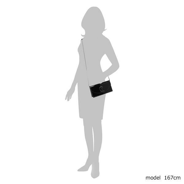 ツヤのある風合いに、メタルパーツが施された高級感あふれるデザインです。スマートフォンやハンカチ、カード類などの必需品が収まるサイズ感。ディナーやパーティーシーンにも活躍します。