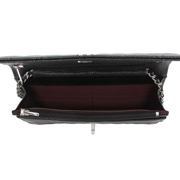 ふっくらとしたキルティングとチェーンの組み合わせが、程良い存在感を放ちます。フラップ中央にはブランドらしいモチーフを飾り、さりげなく華やぎをプラス。カードや小銭を収納できる設計で、これひとつで身軽にお出掛けいただけます。背面はポケットを備えており、小物の出し入れも便利です。