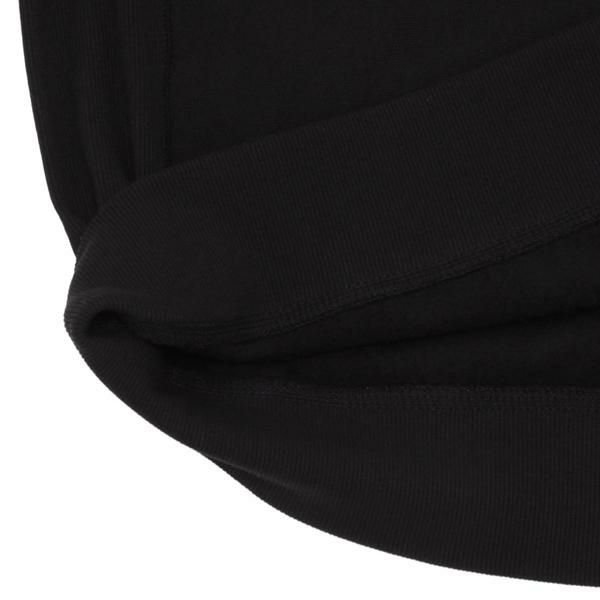 シックなカラーリングにワンポイントのロゴ刺しゅうが映えるデザインです。ざっくりと着られるルーズなシルエットで、カジュアルなスタイルとも好相性。首元はシンプルなクルーネックを採用し、着回しもしやすく、ワードローブに揃えておくと重宝します。