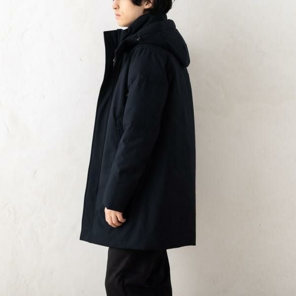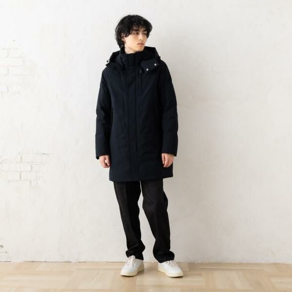 シワになりにくいマットな質感のダウンジャケットです。ドローコードが施された取り外しできるフード付きや、リブ仕様の袖口など細かいディテールも魅力。幅広い年代の方におすすめのシンプルなデザインです。