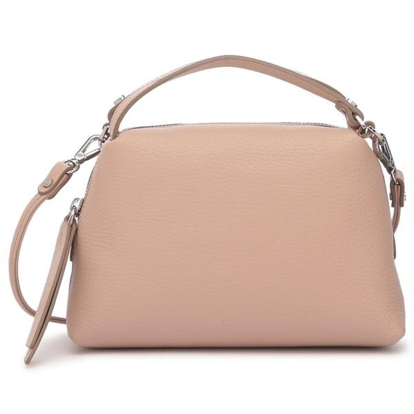 コロンとした愛らしいフォルムが特徴のハンドバッグです。無駄を削ぎ落としたミニマルなデザインが、洗練された印象を与えます。底マチ付きで、見た目以上に収納力があるのもうれしいところ。取り外し可能なショルダーストラップも付属しているため、その日の気分で持ち方を変えられます。