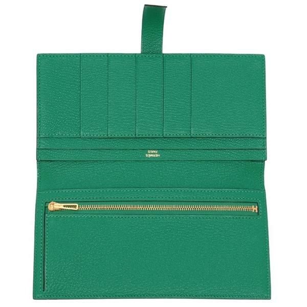 エルメス 長財布 ベアンスフレ ミント U刻印 グリーン レディース HERMES H039078 CC 6W BEARN SOUFFLET CHEVRE MYSORE MENTHE ゴールド金具 (kc31) |