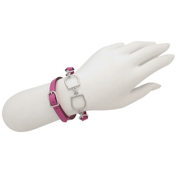 馬の鐙を模ったモチーフが特徴的な一品です。シンプルなフォルムで上品さを残しつつ、華やかなカラーで愛らしさも忘れない絶妙なデザイン。2重にしてつける仕様なので存在感もあり、いつものスタイリングに何かワンアクセント加えたいときにも活躍します。