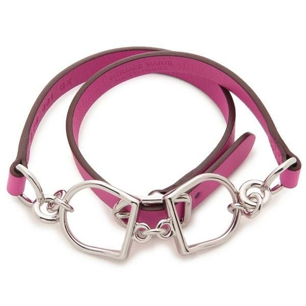 3. エルメス ブレスレット バングル エトリエ C刻印 2重巻き ピンク レディース HERMES H074205 CK 9I