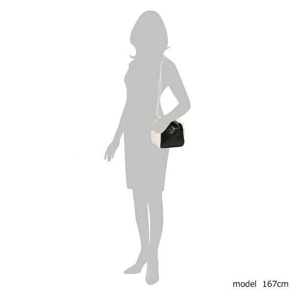 スタイリングのさりげないポイントになるバイカラーのバッグ。キュッと絞れる巾着タイプで、丸みのあるフォルムがやさしげな印象を与えます。ちょっとした小物が入る内ポケットを配置。ショルダーストラップは便利な肩当て付きです。