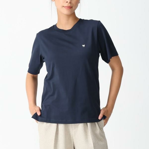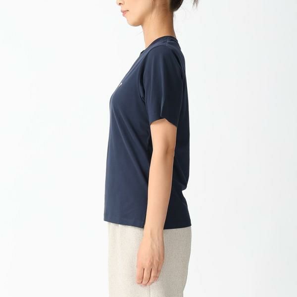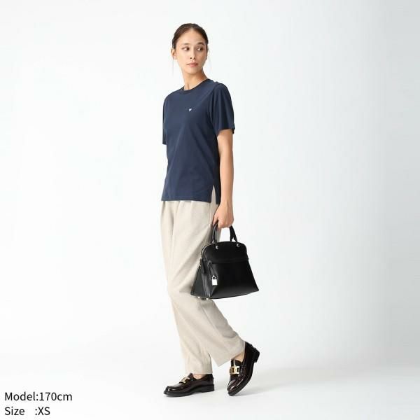 深みのあるカラーリングでまとめたシンプルなデザイン。胸元にさりげなく施されたロゴ刺しゅうは、主張しすぎない控えめなブランドアピールを叶えます。シンプルなクルーネックで着回しやすいのも魅力。ワードローブに揃えておくと重宝する一着です。