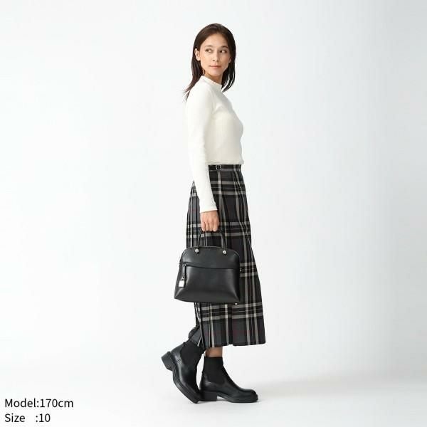 クラシカルなラップスタイルとタックを組み合わせたレトロモダンなデザインが魅力。前端部分にはフリンジを施し、さりげないアクセントをプラスしました。膝を隠すほど良いロング丈で、スタイリングをぐっとエレガントに見せてくれるのも嬉しいポイントです。