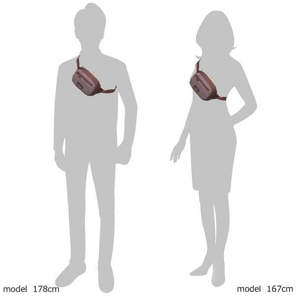 コンパクトな横長フォルムのボディバッグ。フロントにロゴをあしらいアクセントを加えました。軽量ながら丈夫なリサイクル素材を使用しており、長くご愛用可能。使わない時はポケットに本体を収納できるので、持ち運びにも便利です。