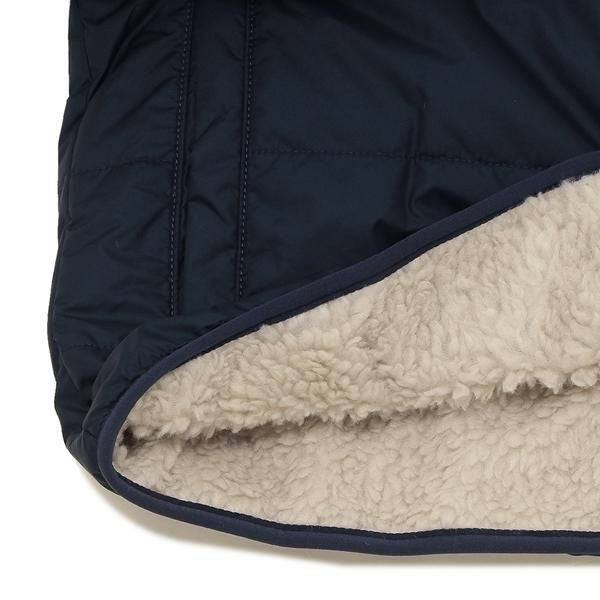 キルトライン入りの耐久性に優れたリサイクル・ポリエステル100%素材のフーディー。フリース面でも着用できるリバーシブル仕様がポイントです。着回し力に優れたシンプルなデザインで、通園や通学にもおすすめです。