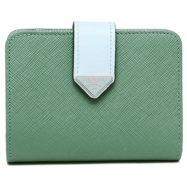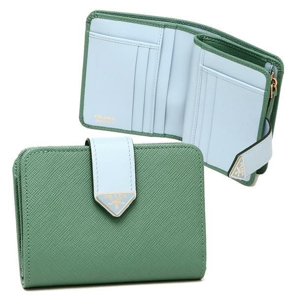 プラダ 二つ折り財布 サフィアーノ トライアングルロゴ グリーン ブルー レディース PRADA 1ML018 2DYG F03HX
