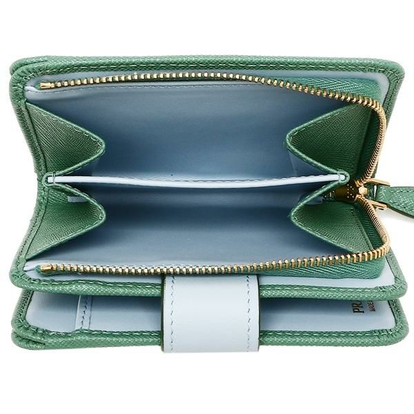 6. プラダ 二つ折り財布 サフィアーノ トライアングルロゴ グリーン ブルー レディース PRADA 1ML018 2DYG F03HX