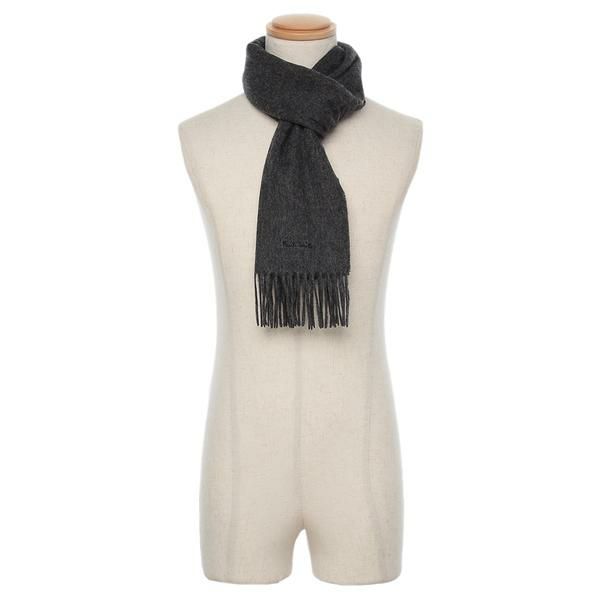 商品名 ポールスミス マフラー ロゴ フリンジ グレー メンズ レディース ユニセックス PAUL SMITH M1A 933D AS04 76 DARK GREY BLACK ラムウール (jk07)
