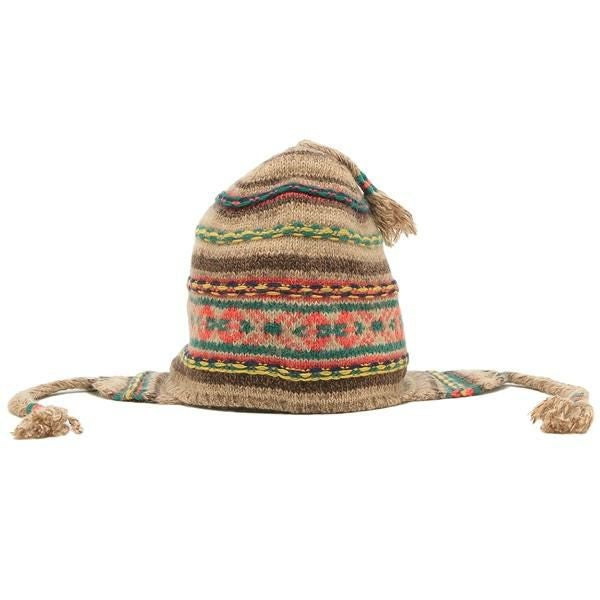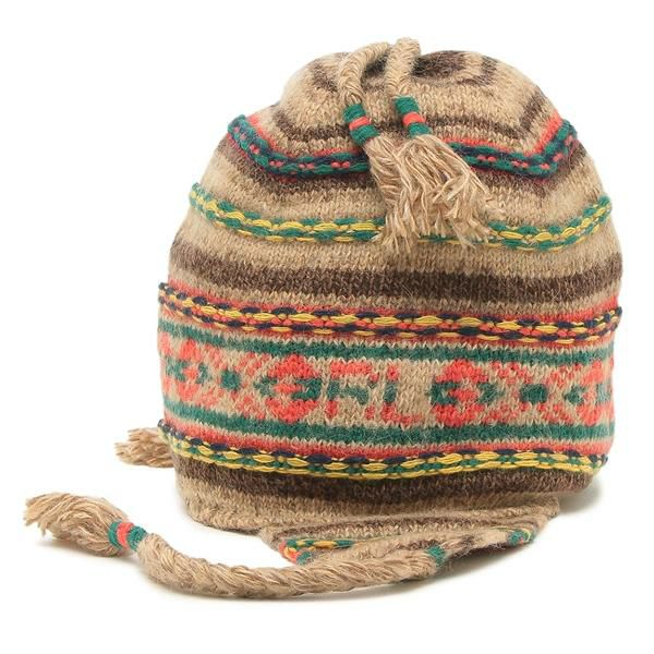 カラフルなパターンで編まれたニット帽。軽量ながら保温性があり、頭周りを優しく包み込みます。耳あて付きなので、寒い日の防寒対策にもおすすめ。コーディネートのアクセント役にもぴったりです。