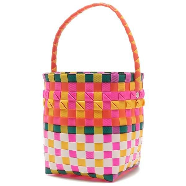 立体的な編み込みデザインや、マルニらしいカラフルな配色が魅力のかごバッグ。ぷっくりとしたシルエットで、可愛らしさをプラスしました。オープンタイプの間口で荷物を出し入れしやすいのも嬉しいポイントです。
