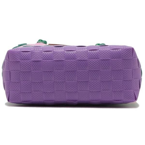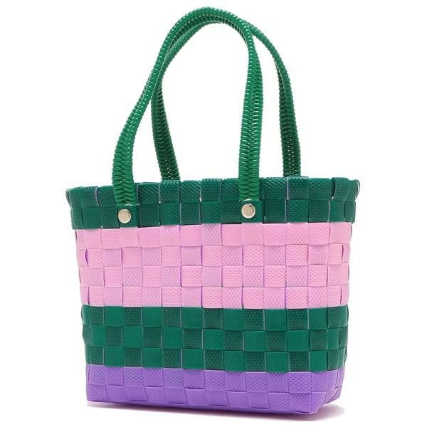 カラフルな配色が目を引くかごバッグ。スマートフォン、ハンカチなどの必需品が収まるミニマムサイズです。フロントにあしらったロゴパッチでアクセントをプラス。軽量でさっと持ち歩けるので、ワンマイルのお出かけやショッピングにぴったりです。
