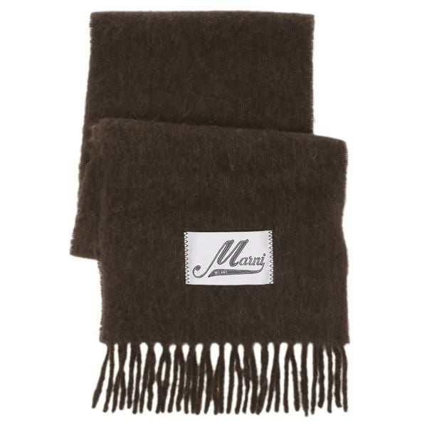 マルニ マフラー ロゴラベル フリンジ 大判 ストール ブラウン レディース MARNI SCMC0059Y0 UTW918 00M29 2025秋冬新作