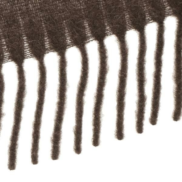 シンプルなワンカラーにあしらったロゴラベルが目を引きます。落ち着いた雰囲気があり、幅広いスタイリングと好相性。動くたびに揺れるフリンジデザインもポイントです。アレンジができる大判サイズで、首元をあたたかく包み込みます。