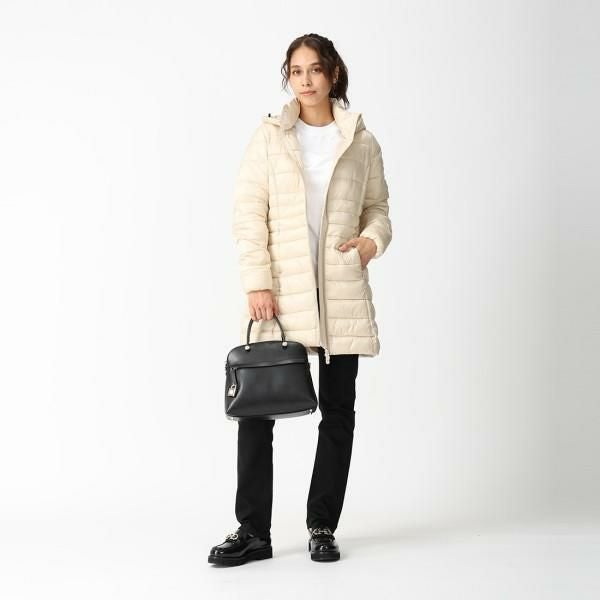 軽量ながら保温性に優れたダウンジャケット。なめらかで光沢のある風合いに、ウエストシェイプしたシルエットが女性らしさを演出します。さっと着脱できるダブルジップ開閉や、取り外しできるフード付きも嬉しいポイントです。