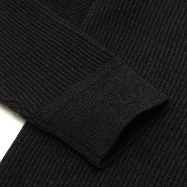 生地の上品な表情が際立つリブ編みのニット。アーム部分に添えたアイコニックなバッジがアクセントです。ほどよくゆとりのある設計で、どのシルエットのパンツを合わせても様になります。